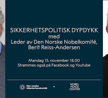 Mandag 15. november har Den norske Atlanterhavskomité, i samarbeid med Nobels Fredssenter, gleden av å invitere til Sikkerhetspolitisk dypdykk med Reiss-Andersen. Samtalen ledes av Christian Borch. Vi ser frem til å høre mer om arbeidet i Nobelkomitéen, årets fredsprisvinnere og sammenhengen mellom ytringsfrihet og fred.